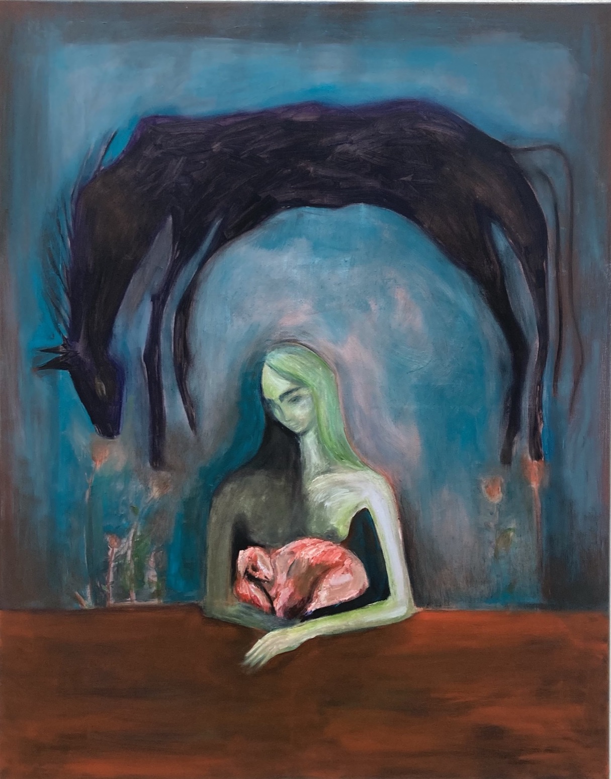 Mutter der Lämmer / 21 x 21 cm / Öl auf Leinwand