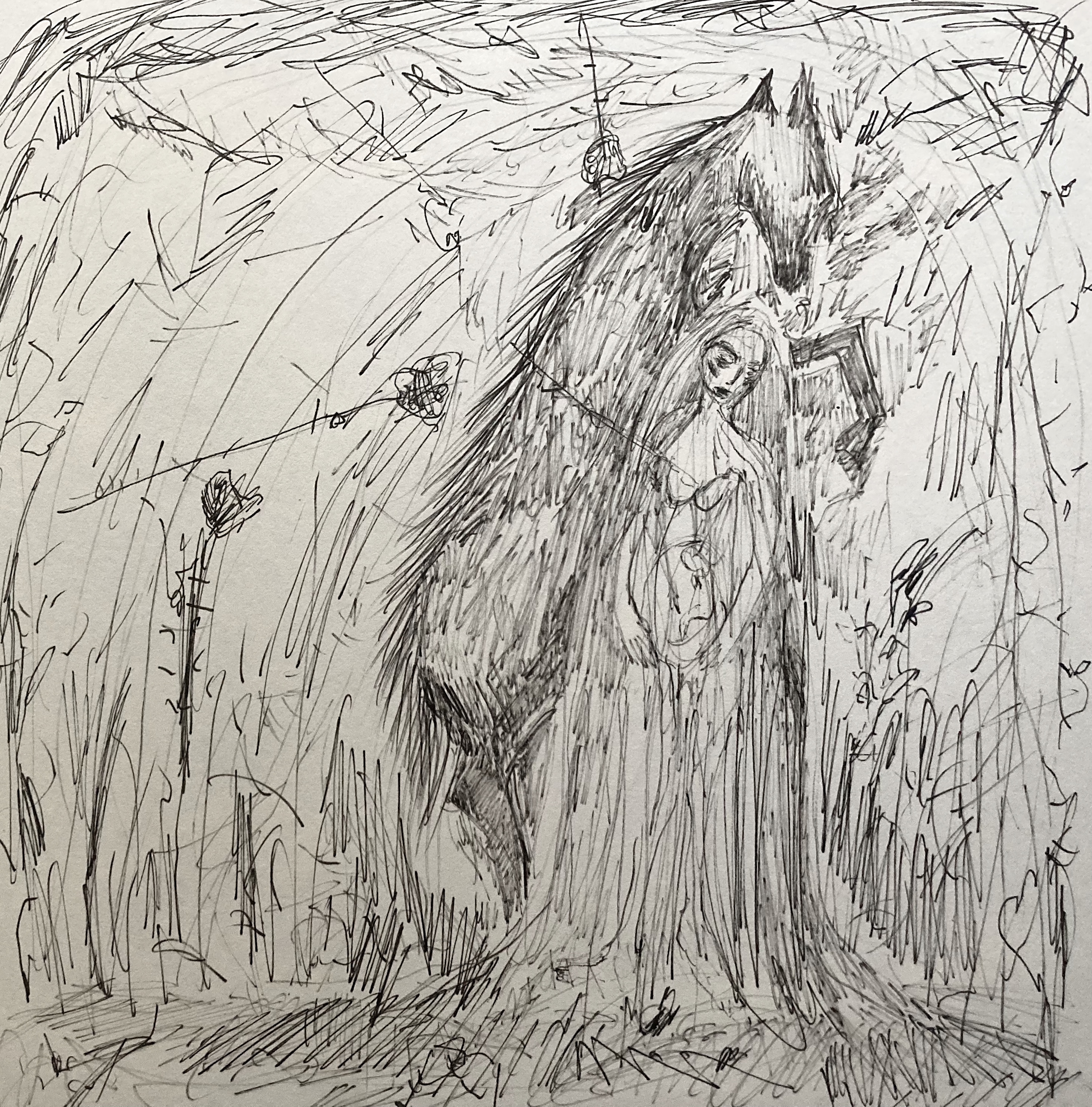 Lämmer und Dämonen / 29,7 x 42 cm / Graphit und Buntstift auf Papier