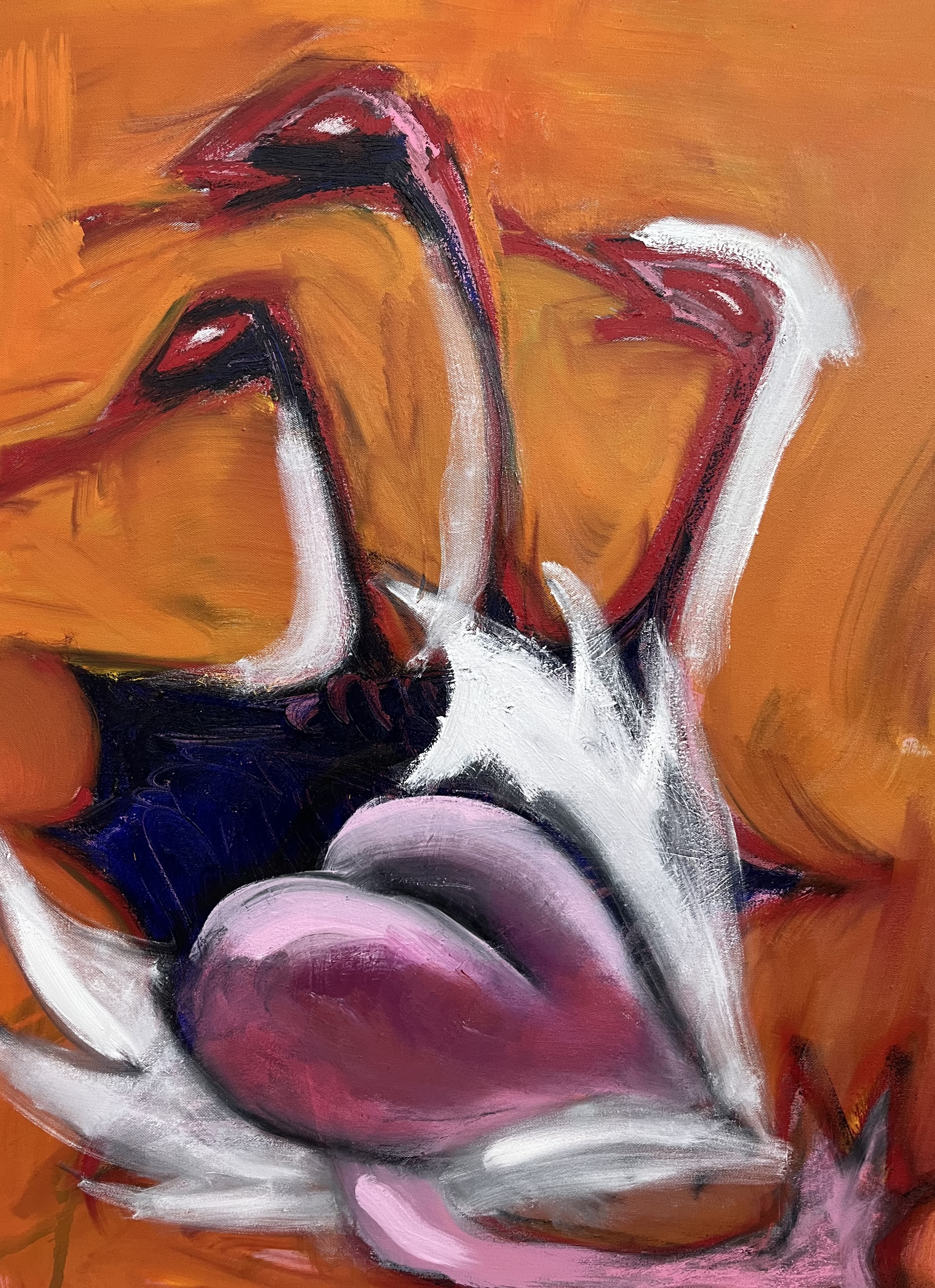 Dreikopfdrache und Liebe / Öl auf Leinwand / 2024